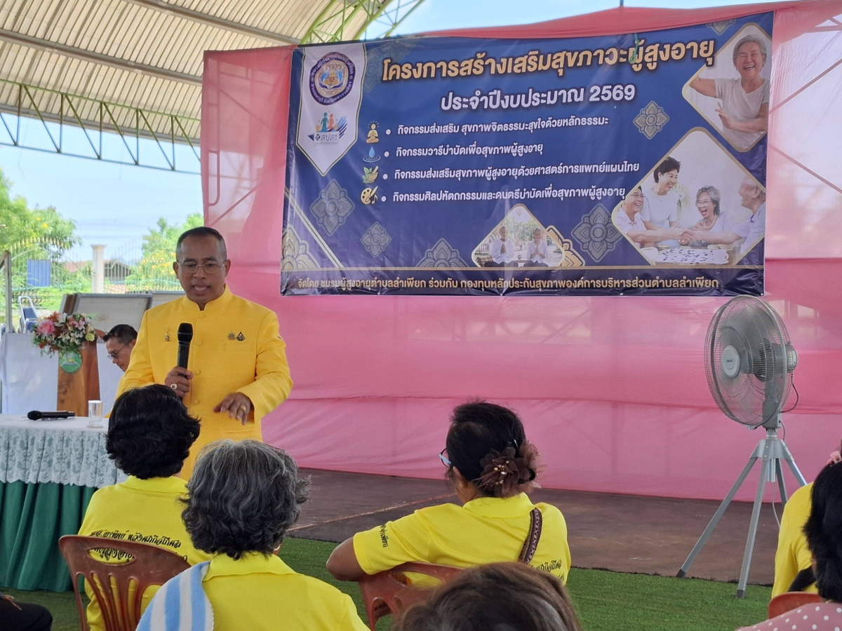 2 เมษายน 2569 ชมรมผู้สูงอายุตำบลลำเพียก ได้รับการสนับสนุนงบประมาณจากกองทุนหลักประกันสุขภาพองค์การบริหารส่วนตำบลลำเพียก ได้จัดกิจกรรม โครงการสร้างเสริมสุขภาวะผู้สูงอายุ ประจำปีงบประมาณ 2569 ณ อาคารโดมองค์การบริหารส่วนตำบลลำเพียก ภายในงานมี การจัดกิจกรรมส่งเสริม สุขภาพจิตธรรมะสุขใจด้วยหลักธรรมะ โดยท่าน ดร.มหาสมศักดิ์ สนพะเนาว์